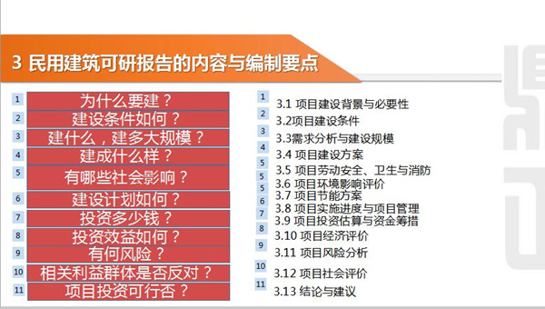 上午,來(lái)自工程咨詢一部的余國(guó)秋做了《民用建筑可行性研究報(bào)告編制要點(diǎn)與實(shí)務(wù)》的主題分享。余國(guó)秋從可行性研究基本認(rèn)識(shí)、民用建筑可行性研究報(bào)告編制要點(diǎn)、可行性研究實(shí)務(wù)三個(gè)方面展開(kāi),重點(diǎn)闡述了做可行性研究報(bào)告的必要性,怎么做可行性研究報(bào)告。