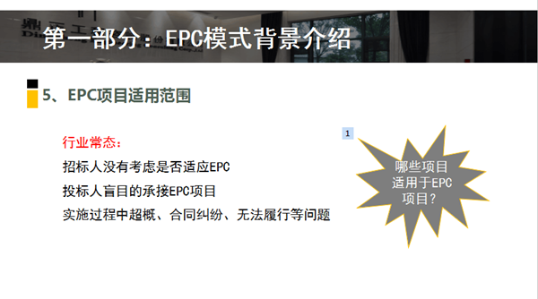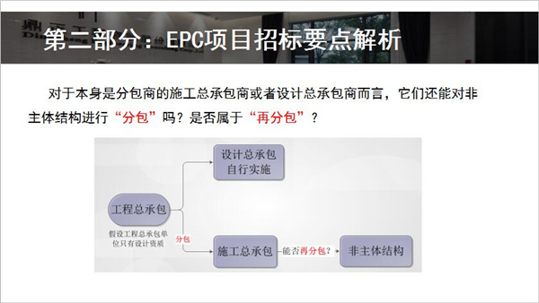 下午,采購(gòu)與招標(biāo)代理事業(yè)部的潘勝?gòu)?qiáng)帶來(lái)了《EPC項(xiàng)目招標(biāo)實(shí)務(wù)》的主題培訓(xùn)。潘勝?gòu)?qiáng)首先介紹了EPC模式的背景,包含工程總承包的主要模式,EPC發(fā)展?fàn)顩r,EPC項(xiàng)目適用范圍,招標(biāo)流程等多方面內(nèi)容。隨后對(duì)EPC項(xiàng)目招標(biāo)要點(diǎn)進(jìn)行了解析,結(jié)合相關(guān)政策文件對(duì)工程總承包發(fā)包階段和條件、資格條件的設(shè)置、EPC項(xiàng)目前期單位是否可以參與后期投標(biāo)、合同計(jì)價(jià)方式、分包原則進(jìn)行了詳細(xì)的解讀。