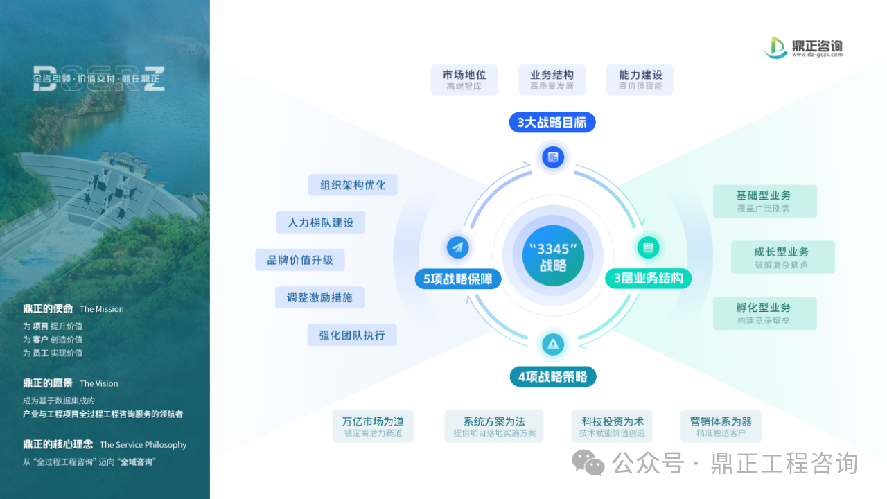 彭總指出,歷經(jīng)行業(yè)深度調(diào)整,鼎正已站在全新的發(fā)展起點(diǎn)。他強(qiáng)調(diào),破局的關(guān)鍵在于轉(zhuǎn)變思維模式,以全新姿態(tài)擁抱變革,探索新業(yè)務(wù)、構(gòu)建新模式。“3345”戰(zhàn)略正是驅(qū)動(dòng)這場(chǎng)轉(zhuǎn)型的核心引擎,通過(guò)堅(jiān)定扎根縣域市場(chǎng)、構(gòu)筑堅(jiān)實(shí)技術(shù)護(hù)城河,重塑工程咨詢行業(yè)價(jià)值標(biāo)準(zhǔn),鼎正將邁向更成熟、更理性的發(fā)展新階段,未來(lái)的發(fā)展也會(huì)變得更穩(wěn)健。