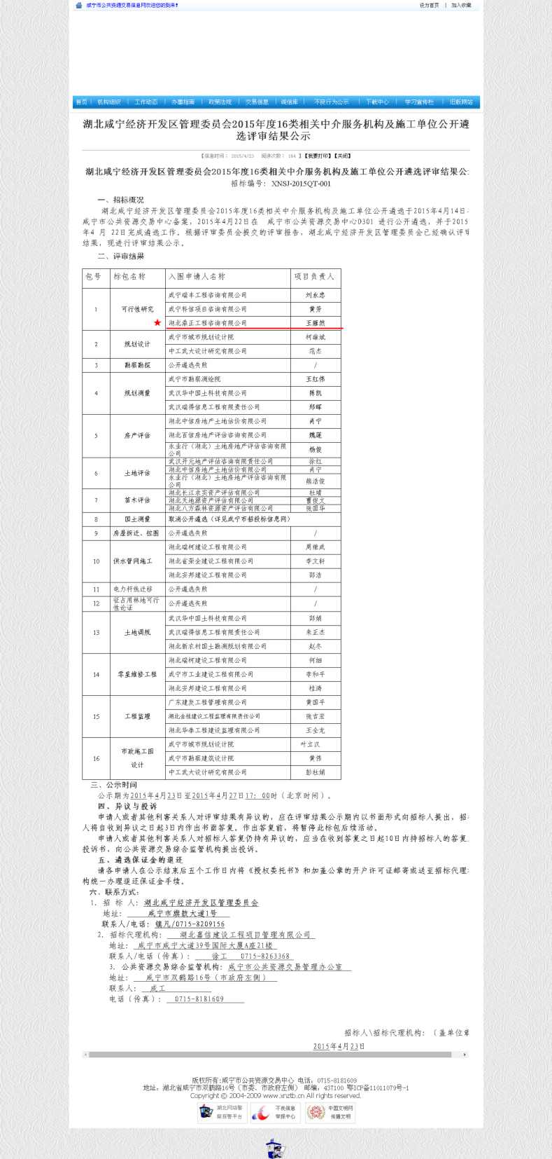 【經(jīng)營成果】我司入圍湖北咸寧經(jīng)濟(jì)開發(fā)區(qū)管理委員會2015年度16類相關(guān)中介服務(wù)機(jī)構(gòu)的可行性研究單位