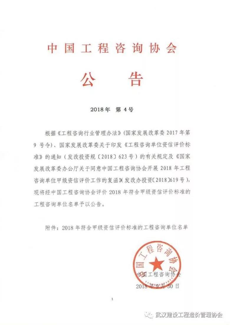 2018年9月19日,中國建設(shè)工程造價(jià)管理協(xié)會(huì)發(fā)布了“2018年度全國工程造價(jià)咨詢企業(yè)信用評(píng)價(jià)結(jié)果”,此次湖北省僅有22家工程造價(jià)咨詢單位獲得AAA信用評(píng)級(jí),我司從全國眾多參評(píng)單位中脫穎而出,獲此榮譽(yù)。